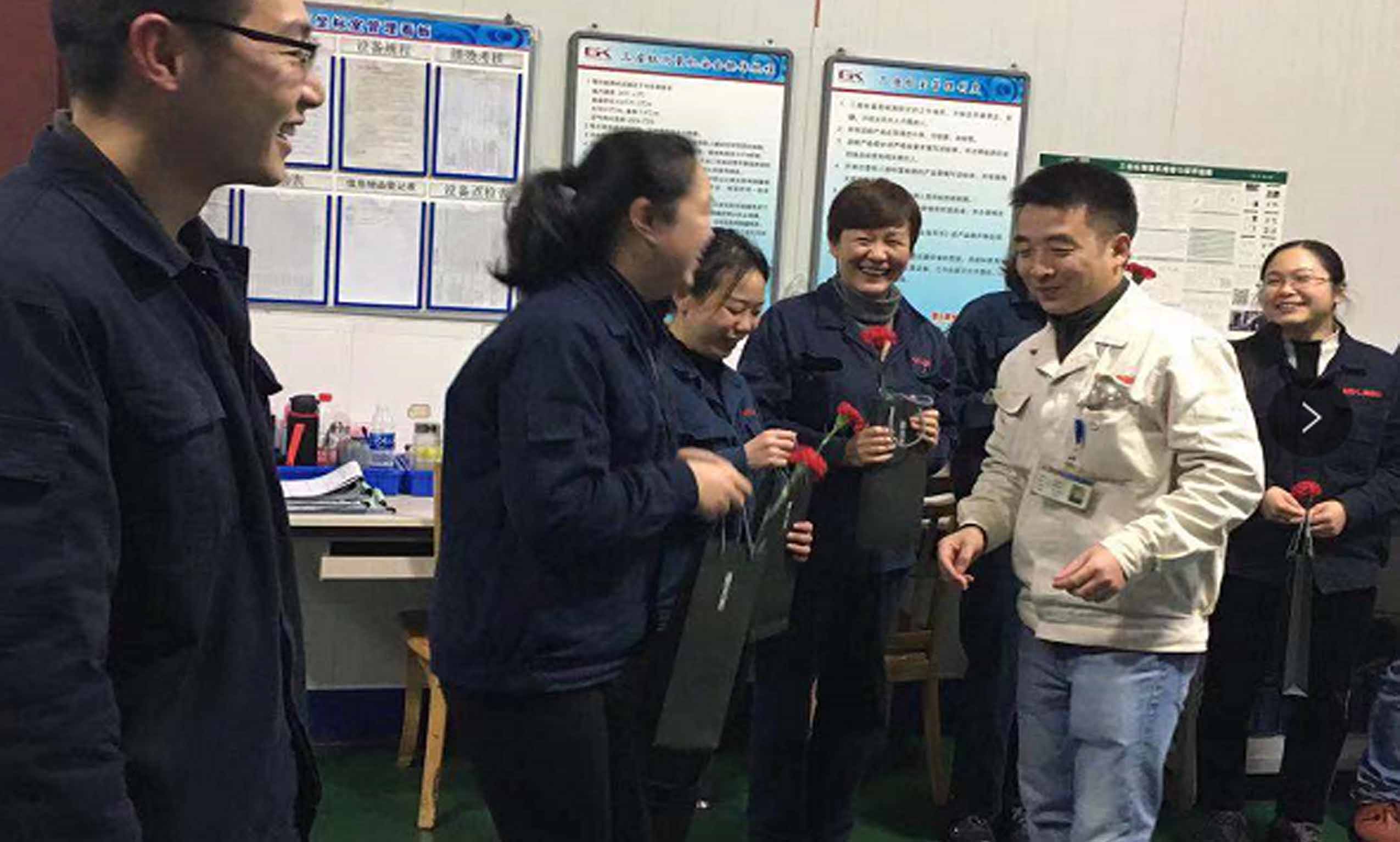 2019年3月8日,為了體現(xiàn)對全體女職工們的特別關(guān)愛,高金各部門領(lǐng)導(dǎo)及工會成員已提早到達公司,拿著工會提前為職工精心策劃和準(zhǔn)備的鮮花、禮物以及書寫著公司祝福語的愛心卡等候到達的女職員們。