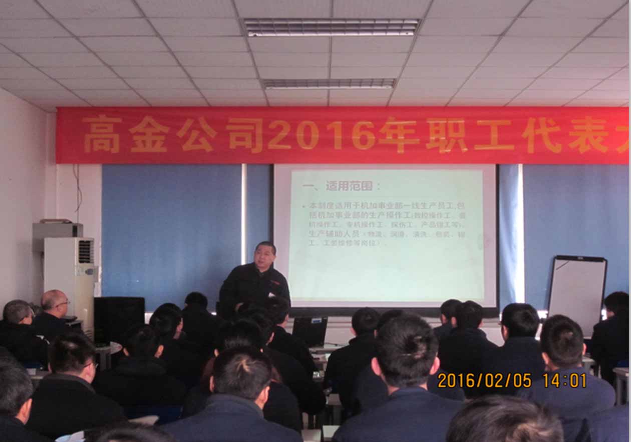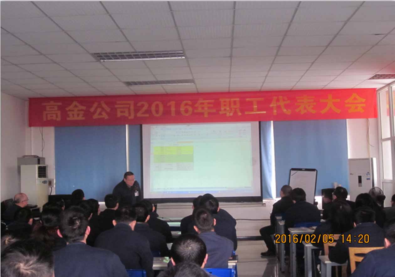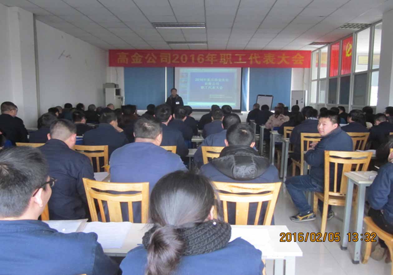 2016年2月5日,重慶高金實業(yè)有限公司2016年第一次職工代表大會在二樓培訓室隆重召開,公司黨支部書記兼常務(wù)副總經(jīng)理易小波、生產(chǎn)副總許鋒、總經(jīng)理助理劉天全、財務(wù)部部長敬國仁、工會主席曹興建及公司各部門負責人和職工代表共75人出席了大會。